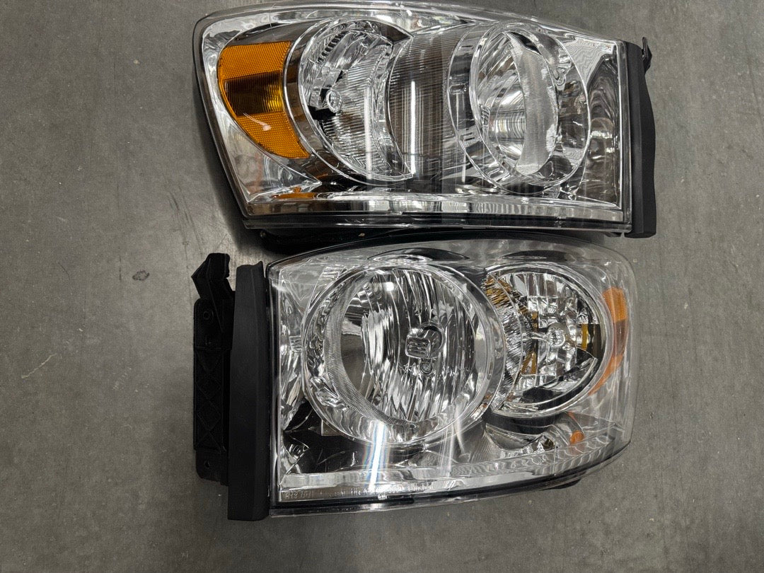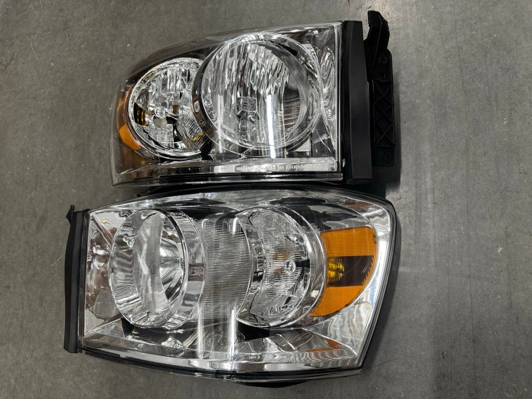 2006 to 2008 Dodge Ram OE Style Chrome Housing Amber Reflector Headlights Faros Focos Luces Micas For